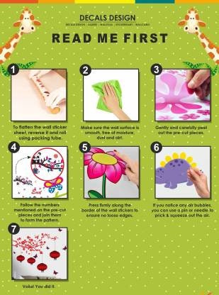 PVC Vinyl Compatible Ideal for Family Lounge, Bedroom, Cafe and Restaurant, Kids room, Nursery Room etc. Features PVC, Non-toxic, Eco-friendly, Waterproof. These wall stickers decorate your home just in minutes. Wall Sticker Application Instruction Our wall decal application instructions will make it easy for you to apply your wall decals. The surface you wish to attach your decal must be clean and free from dust, grease or any other contamination. Simply peel those pre-cut pieces of wall stickers off from the backing paper and apply them to the desired area. Refer to the finished design shown in between the sheet and follow the numbers mentioned on the pieces to form the desired pattern. Freshly painted or lacquered surfaces must be allowed to completely cure for minimum 30 days before the decal is applied. After pasting the wall stickers on your wall, press firmly along the border and remove air bubbles if any. Repeat, if required. Don't apply on wet walls