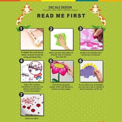 - Effortless DIY installation: The wall decals come as pre-cut pieces with a numbered layout. Just peel each piece from the backing paper and apply to the desired area in the sequence shown to form the finished design.